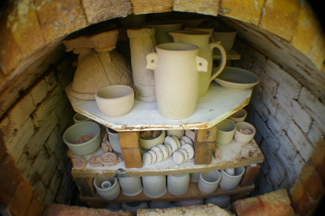 The kiln stage is where you harden the pottery. You start with a lower heat then bring up the temperature. This removes any moisture left over and the slow increase in heat prevents the pottery from exploding.
